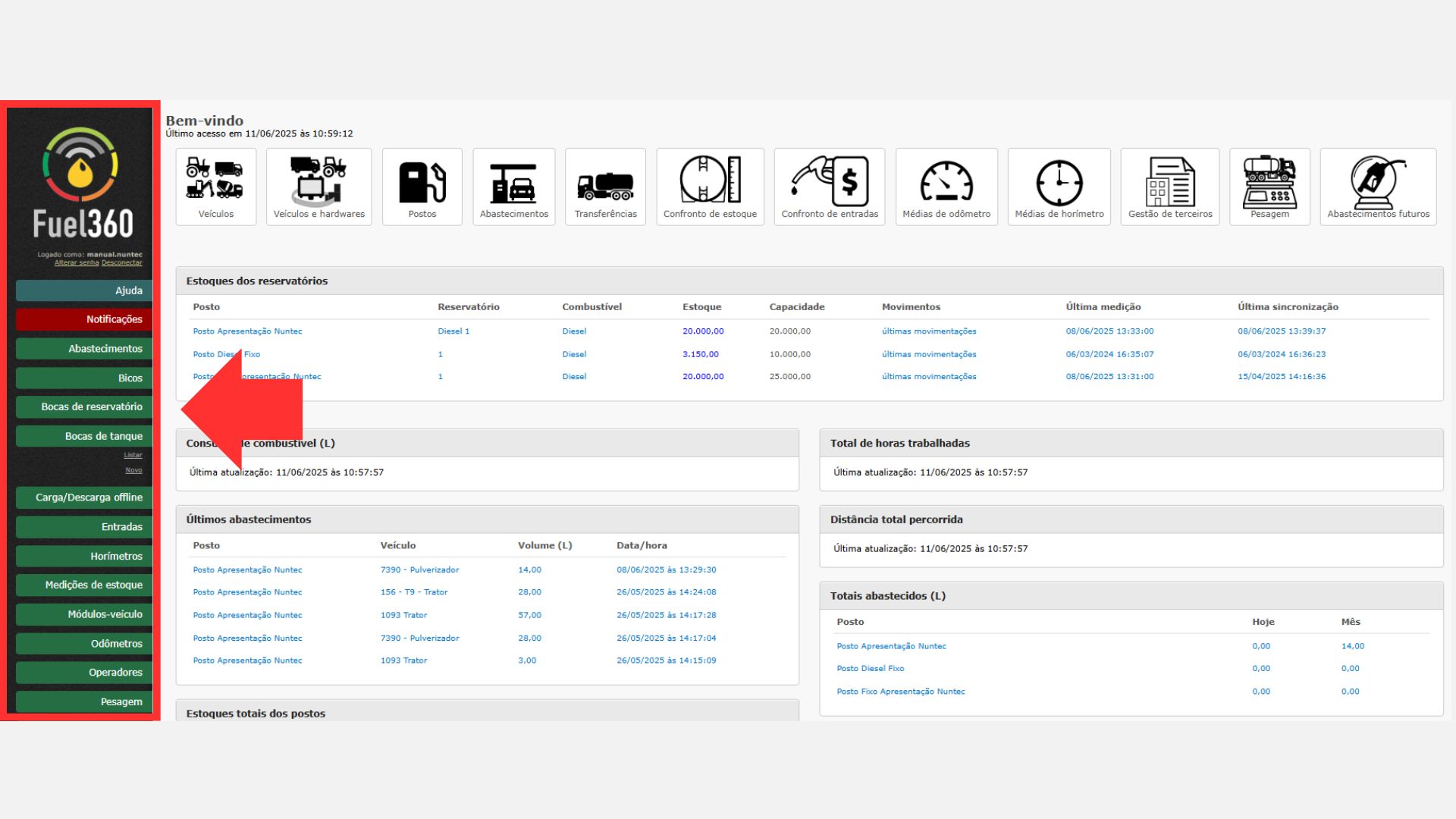 Ao clicar em um item, aparecerá duas opções: Listar e Novo.