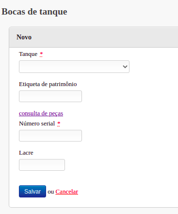 Após preenchimento do formulário de cadastro da boca de tanque deve-se clicar em Salvar.