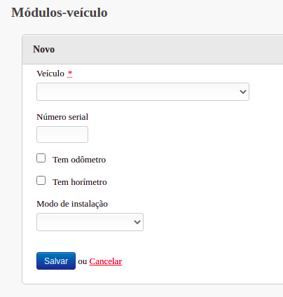 Para criar um novo módulo-veículo, deve-se clicar em Novo e será exibida a seguinte tela:
