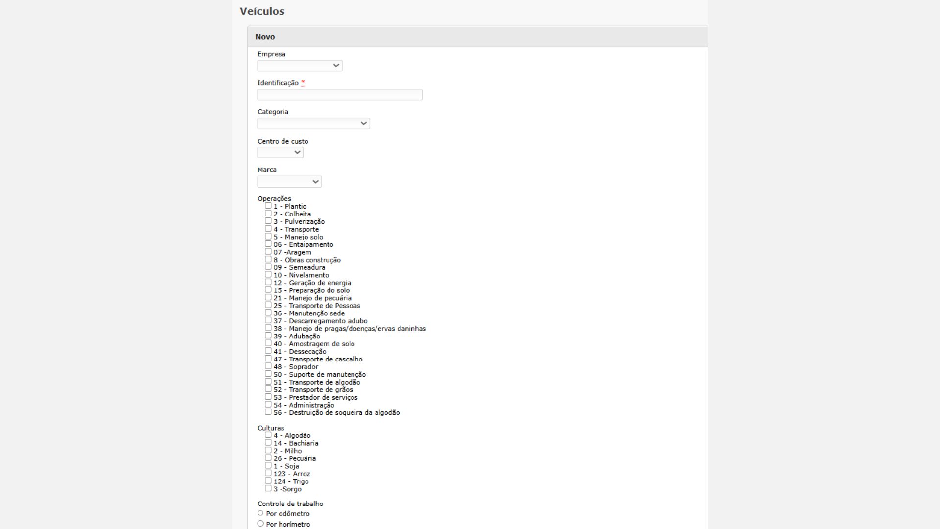 Culturas: Culturas em que o veículo pode operar.