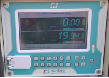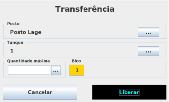 Para encerrar o abastecimento, basta pressionar o botão Cancela do teclado. Ou o abastecimento será encerrado automaticamente, quando a litragem alcançar o valor que foi preenchido no campo Quantidade desejada para transferência (em litros).