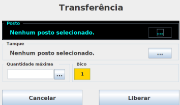 Para realizar um abastecimento de transferência, o operador deve selecionar a categoria 1 Saídas de combustível e a função 3 Transferência. Aparecerá uma nova tela: