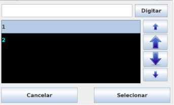 Deve-se selecionar o tanque desejado com as teclas de navegação do teclado (Anterior ou Próximo), em seguida pressionar o botão Entra para que o tanque seja escolhido e botão Selecionar fique destacado na cor preta. Para confirmar, o operador deve pressionar o botão Entra do teclado novamente.
