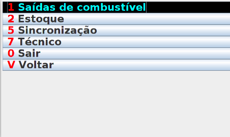 Para selecionar um item do menu, o operador, através do teclado, pressiona os botões de navegação (Anterior ou Próximo) até o item desejado ficar selecionado (a cor de fundo será preta) e pressionar o botão Entra ou digita o número correspondente ao item, que é exibido na cor vermelha antes do nome do item de menu.