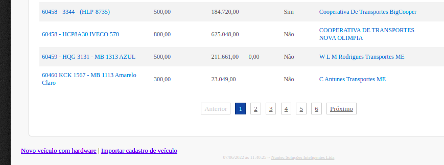 Para importar um determinado veículo deve-se entrar tela de lista de veículos, no final da página haverá a opção Importar cadastro de veículo.