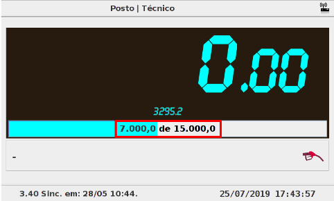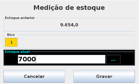 Após isso abrirá uma tela de Medição de estoque com um campo de Estoque atual que deve ser preenchido com a quantidade de litros de combustível no tanque do posto.