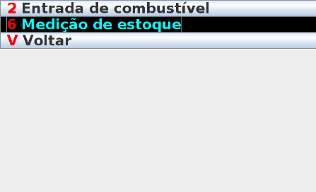 Após isso, deve selecionar no menu o item 6 Medição de estoque e pressionar o botão E do teclado.