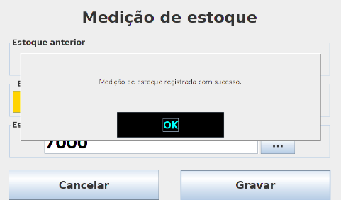 Após o preenchimento da quantidade pressione o botão Gravar e irá aparecer uma mensagem de sucesso.