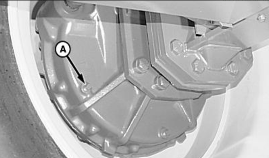 1 - Remova o bujão de enchimento da redução final (Figura 1) e verifique o nível de lubrificante da redução final. O nível do lubrificante deve estar a 6 mm (1/4 in) da parte inferior do bocal de enchimento.